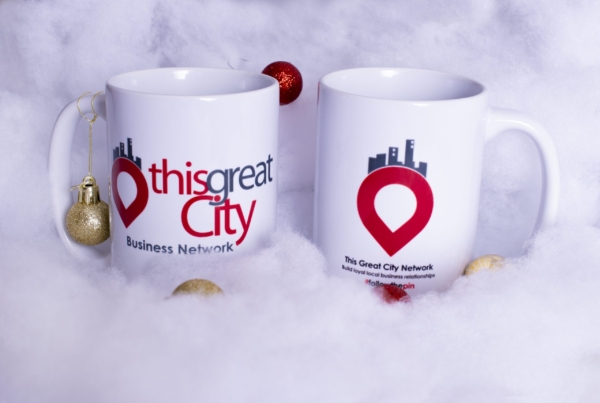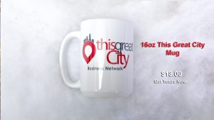 16oz white ceramic coffee mug. Perfect for your morning coffee!